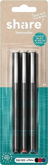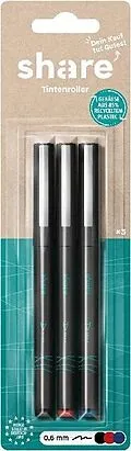 Set mit 3 Tintenrollern in den Farben schwarz, rot und blau. Strichstärke 0,6mm. Die Roller-Spitze ermöglicht komfortables und flüssiges Schreiben. Cap-off Zeit 2-3 Tage. Mit geruchsneutraler, wasserbasierter Tinte und einer Strichstärke von 0,6mm. Das Gehäuse...