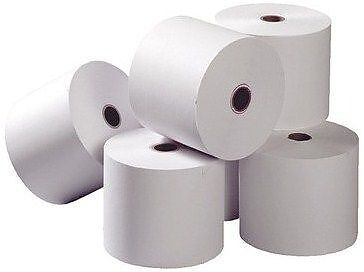 Thermorolle Thermorollen zu den Sharp Kassen XE-A20X, XE-A21X, XE-A30X und Olympia Kassen OL-CM912, OL-CM942, OL-CM942F 80 Laufmeter eingeschweisst zu 5 Stück Papierbreite (mm): 57 Innendurchmesser (mm): 12 Aussendurchmesser (mm): 75 Rollenlänge: 80 m...