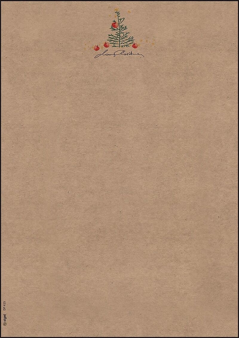 Das Weihnachtspapier mit verschiedenen Motiven lädt zum schreiben von Karten ein.