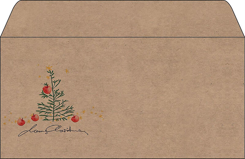 Das Weihnachtspapier mit verschiedenen Motiven lädt zum schreiben von Karten ein.