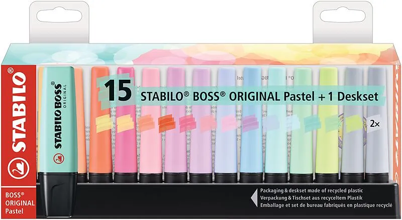 BOSS PASTELL - Textmarker Textmarker STABILO® BOSS® ORIGINAL. In Europa ist er die Nummer Eins unter den Textmarkern. Ein moderner Klassiker für alle, die sich beim Lesen und Lernen auf das Wesentliche konzentrieren wollen. Sein einzigartiges Design macht ihn...