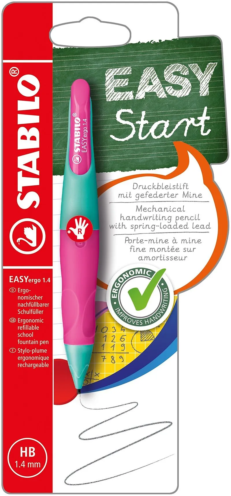 EASYERGO 1.4 START - Bleistift Der STABILO EASYergo ist der ideale Druckbleistift für fortgeschrittene Schüler/innen. Das innovative und ergonomische Design wurde speziell für die Bedürfnisse von Schreibanfängern entwickelt. Die Griffmulden geben Halt & b...