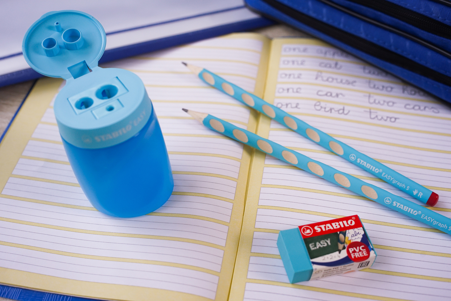 STABILO EASYgraph S Schul-Set: das perfekte Set für die Schule bestehend aus 2 Bleistiften (STABILO EASYgraph), 1 Radierer und 1 Spitzer (STABILO EASYsharpener). / STABILO EASYgraph S. Ergonomischer Dreikant-Bleistift für fortgeschrittene Schüler die schreiben...