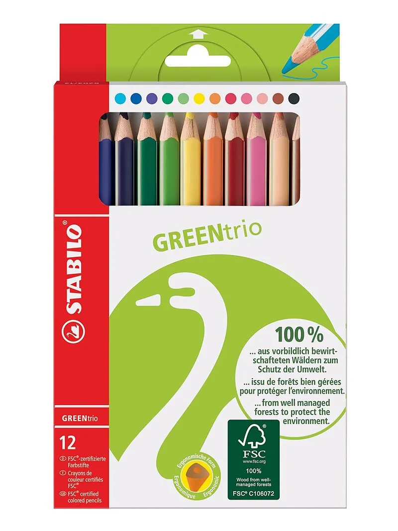 GREENTRIO - Farbstifte Die GREENtrio Farbstifte mit ihrer ergonomischen und breiten Form sind optimal für Kinder geeignet. Der GREENtrio Stift überzeugt ausserdem durch seine intensive Farbabgabge, für leuchtende Bilder! zu 100 % aus streng kontrolliertem, FS...
