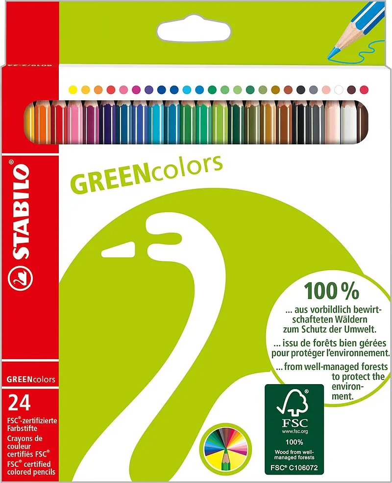 GREENCOLORS - Farbstifte Mit den STABILO GREENCOLORS Farbstifte können Sie mit reinem Gewissen malen und schreiben! Die Stifte sind umweltfreundlich und mit hoher Qualität hergestellt. Dünner Buntstift zu 100% aus streng kontrolliertem, FSC®-zertifiziertem Ho...