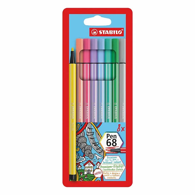 PEN 68 - Sets Mit dem STABILO Pen 68 malst du kräftige Linien oder füllst damit ganze Flächen deckend aus. Die speziellen Farbstoffe geben deinen Zeichnungen Leuchtkraft und eine hohe Farbbrillanz. Schüler, Studenten und alle Freunde intensiver Farbgestaltung...