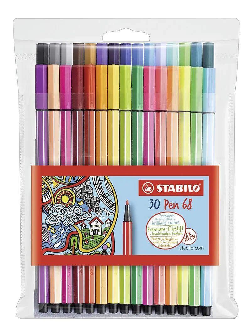 PEN 68 - Fasermaler Farbintensiver Premium-Fasermaler, Optimal geeignet zum malen und schreiben auf dunklem Papier. Die robuste M-Spitze sorgt für gleichmässige Farbabgabe. Ventilierte Kappe - am Stiftende aufsteckbar. Strichstärke: 1 mm Material des Schaftes...