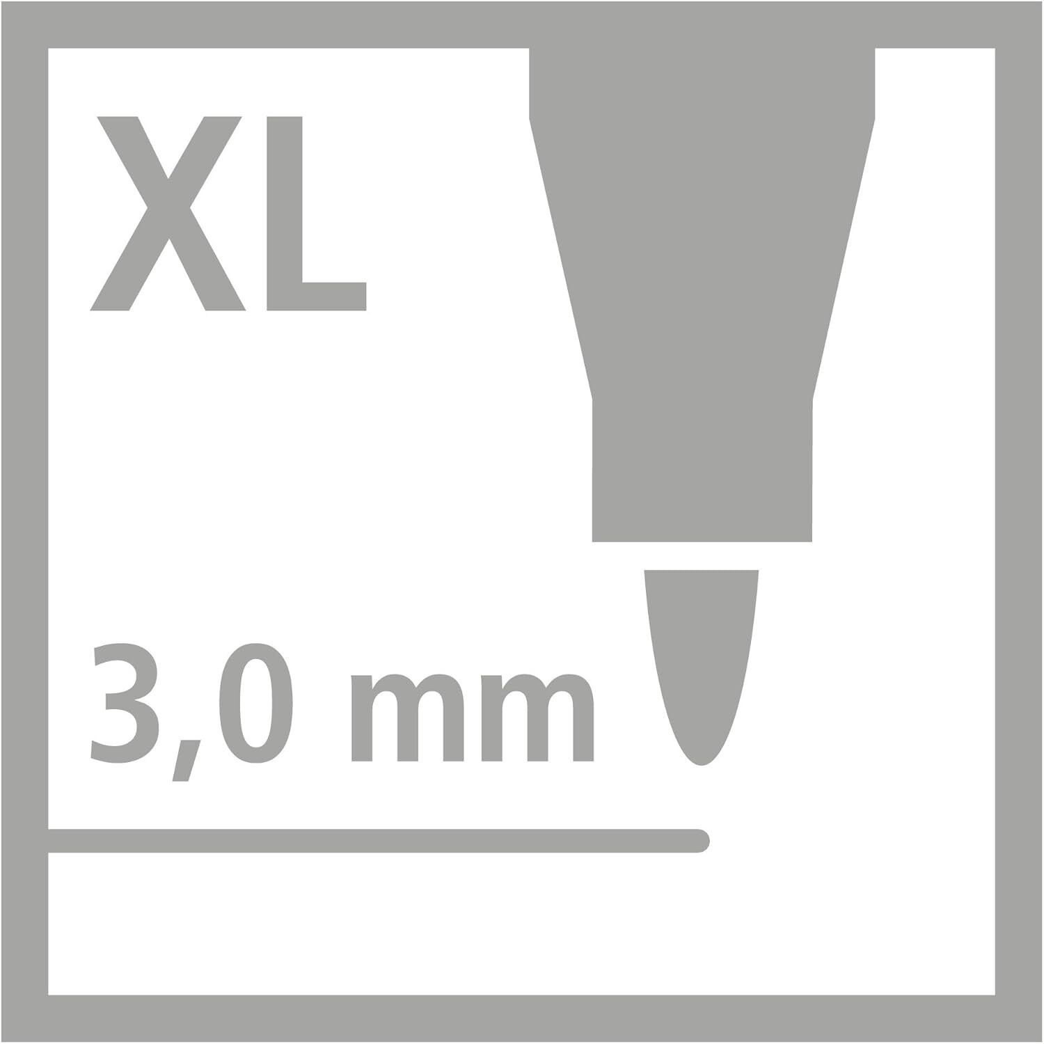Filzstift mit intensiver Farbabgabe; extremer Austrocknungsschutz: Trocknet ohne Kappe bis zu 8 Wochen nicht aus; auswaschbare Tinte; eindrücksichere Spitze; dicke XL-Spitze für besonders große Flächen (ca. 3 mm Strichstärke).