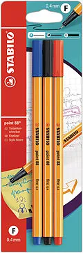 STABILO Fineliner Point 88 0.4mm B-10213-10 schwarz/blau/rot, 3 Stück