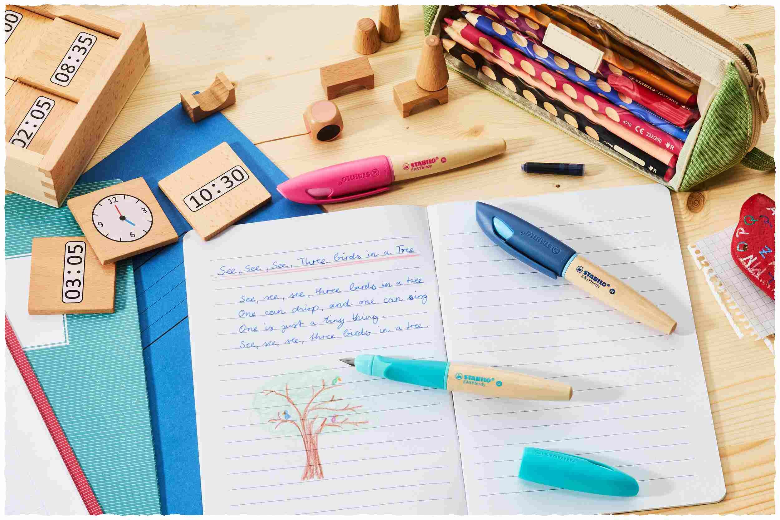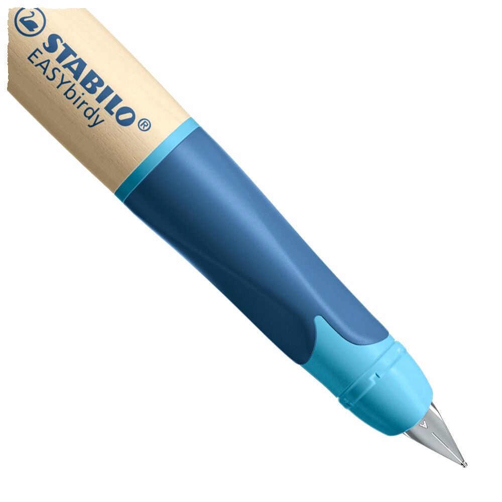 STABILO Füller EASYbirdy Timber in blau - inkl. Patrone, ergonomisch für Linkshänder mit Anfänger-Feder A