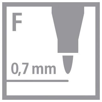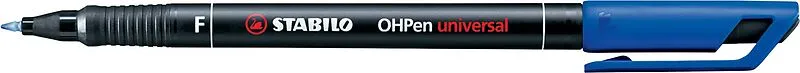 Folienstift STABILO OHPen universal. Typbezeichnung der Mine: Kapillarspeicher. Ausführung Spitze: Schreibdocht, Fein (F) 0,7 mm, geeignet für Schablone. Art der Schreibflüssigkeit: geruchsarme Dry Safe Tinte, schwarz, wasserfest. Kann einige Tage offen liegen...
