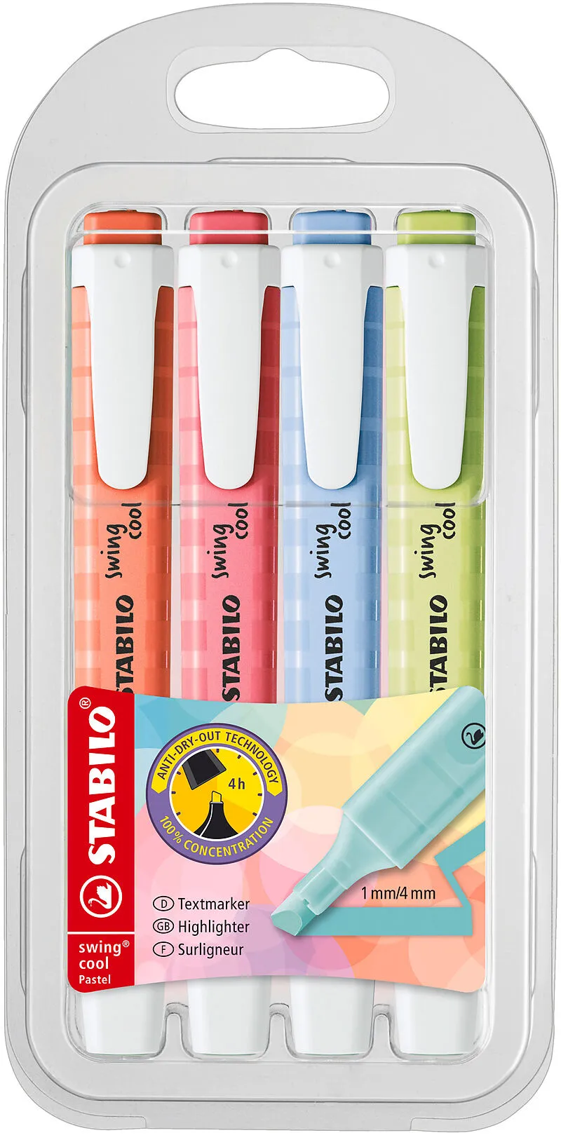 Trendige Zartheit zum Mitnehmen, das ist der STABILO swing cool Pastel. Für alle, die auch unterwegs Highlights setzen wollen und dabei mit dezenten und sanften Farben spielen, sind die swing cool in Pastellfarben die perfekte Lösung. Die STABILO Anti-Dry-Out ...