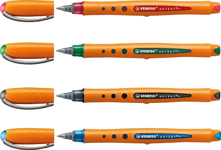 STABILO worker+ fine. Tintenroller mit weiterentwickelter Technologie für professionelle Verwender mit besonders hohen Ansprüchen. Für ein extrem sanftes Schreibgefühl. Unverwüstliche Spitze gleitet rasant über das Papier. Rutschfeste Oberfläche auf dem gesamt...