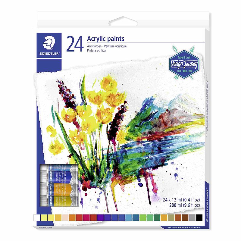 STAEDTLER 8500 Acrylfarbe Hochpigmentierte, brillante Farben Weicher Farbabstrich, leicht mischbar Für eine Vielzahl von künstlerischen Anwendungen Zeichenwerkzeug leicht mit Wasser zu reinigen 12 ml (0.4 fl. oz) Farbtuben Lieferumfang: Kartonetui mit 24 Acry...