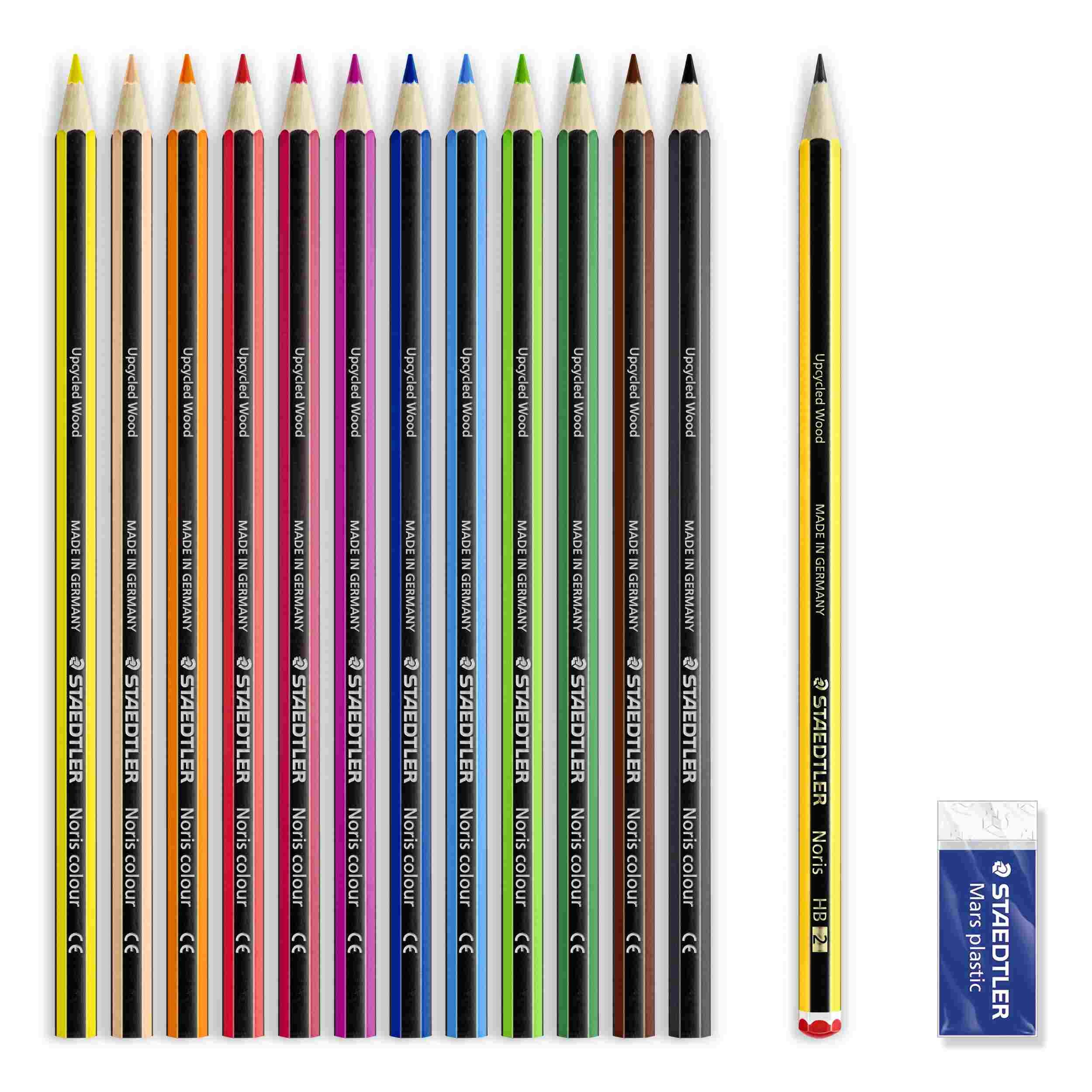 Noris colour Buntstifte. Zum Malen, Schreiben und Radieren für die Schule, Kinder und Jugendliche. Promotion-Set: Beutelpackung mit 12 Buntstiften im Kartonetui + 1 Noris Bleistift und 1 Mars Plastic Mini Radierer als gratis-Zugabe. Inhalt:Art. Nr.: 185 C12 Me...