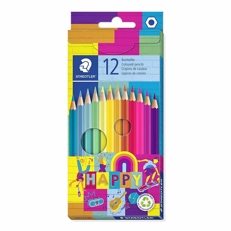 STAEDTLER 146 Buntstift Buntstift im klassischen Sechskantformat Weiche Mine Erhältlich in 12 Farben Holz aus PEFC-zertifizierten, nachhaltig bewirtschafteten Wäldern Spitzer Empfehlung: Doppelklappspitzdose 512 PS2 für ideale Spitzergebnisse Lieferumfang: Ka...