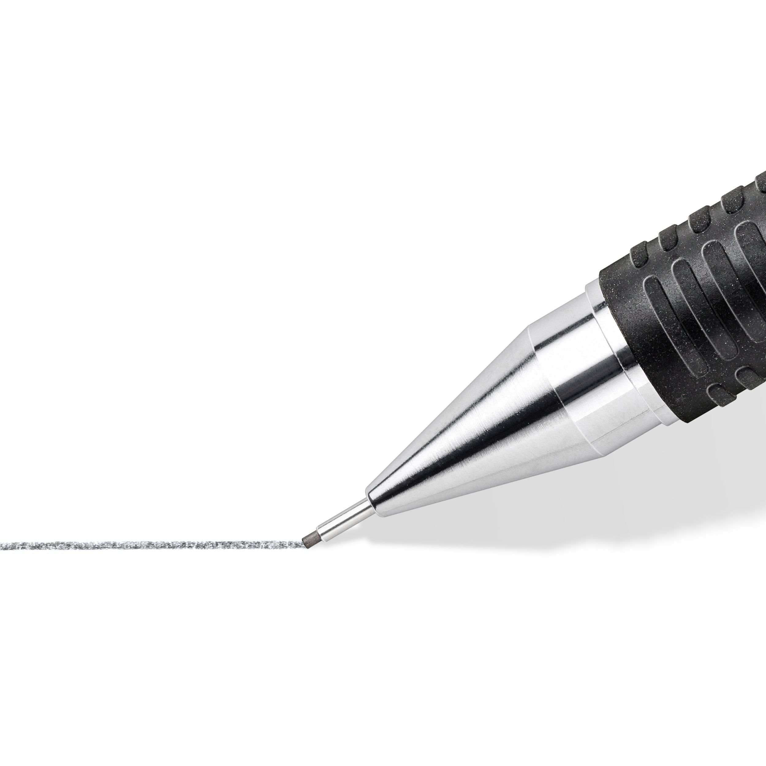 Druckbleistift zum Schreiben und Zeichnen - Starres, zylindrisches Minenröhrchen, ideal für Lineale und Schablonen - Rutschfeste Gummigriffzone - Clip, Drücker und Spitze aus Metall - Taschensicher aufgrund versenkbarem Metall-Minenröhrchen - Federnd gelager...