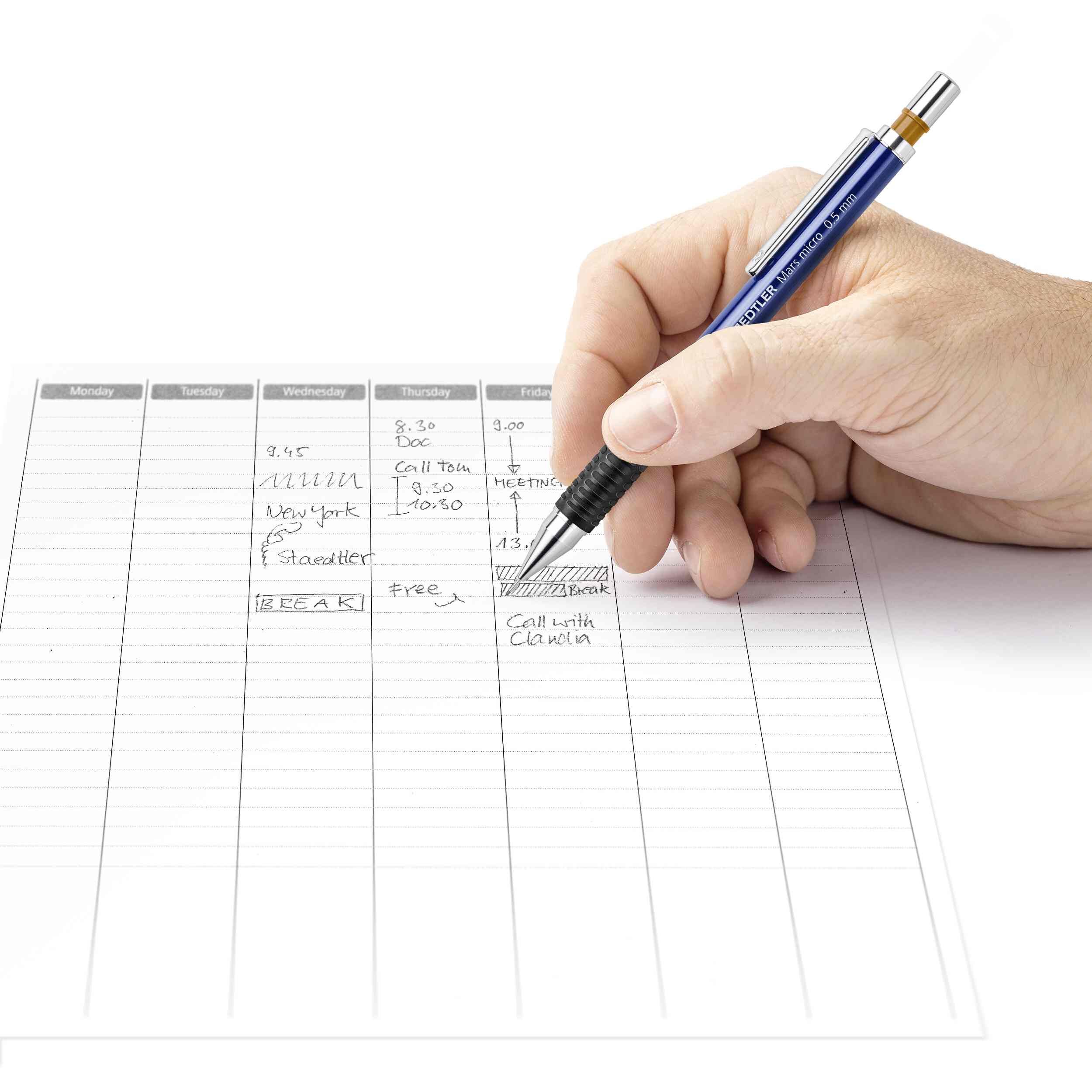 Etui mit 3 Mars micro in sortierten Linienbreiten: 0,3 + 0,5 + 0,7 mm- Druckbleistift zum Schreiben und Zeichnen - Starres, zylindrisches Minenröhrchen, ideal für Lineale und Schablonen - Rutschfeste Gummigriffzone - Clip, Drücker und Spitze aus Metall - Tasch...