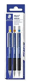 Etui mit 3 Mars micro in sortierten Linienbreiten: 0,3 + 0,5 + 0,7 mm- Druckbleistift zum Schreiben und Zeichnen - Starres, zylindrisches Minenröhrchen, ideal für Lineale und Schablonen - Rutschfeste Gummigriffzone - Clip, Drücker und Spitze aus Metall - Tasch...