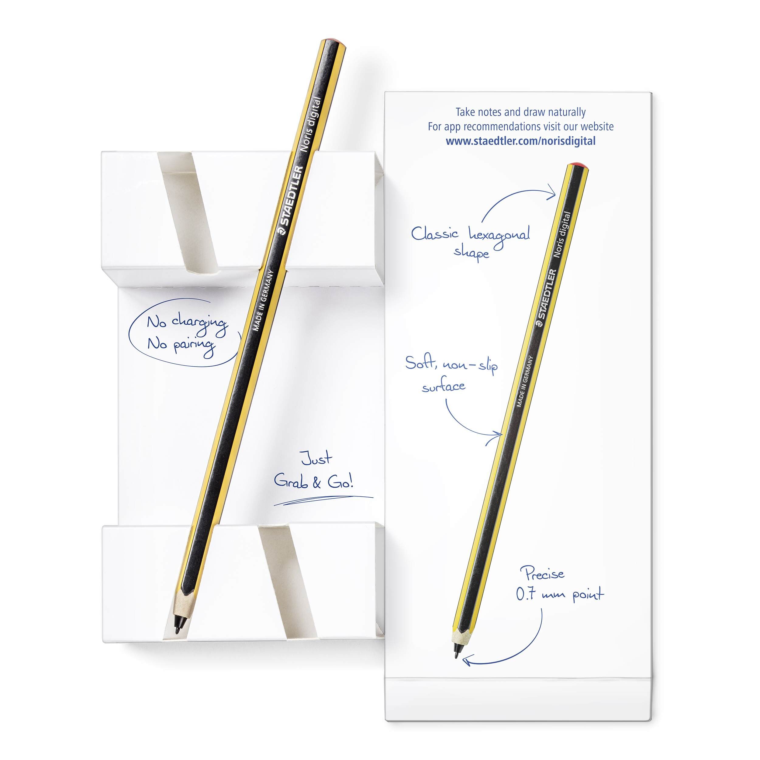 NORIS - Eingabestift Softes Schreiben und Zeichnen auf Displays mit elektromagnetischer Resonanz (EMR) Technologie. Klassische Sechskant-Form für ein natürliches Schreib- und Zeichengefühl. Präzise, austauschbare 0.77 mm Spitze 4096 Druckstufen Kein Aufladen ...