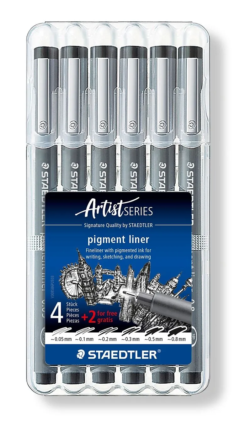 pigment liner 308 - Fineliner zum Schreiben, Skizzieren und Zeichnen; Lange Metallspitze, ideal für Lineale und Schablonen (Mars Schriftschablone 572F); Pigmenttinte, dokumentenecht (in Anlehnung an ISO 14145-2); Radierbar auf Zeichenpapier, überstreichbar ohn...
