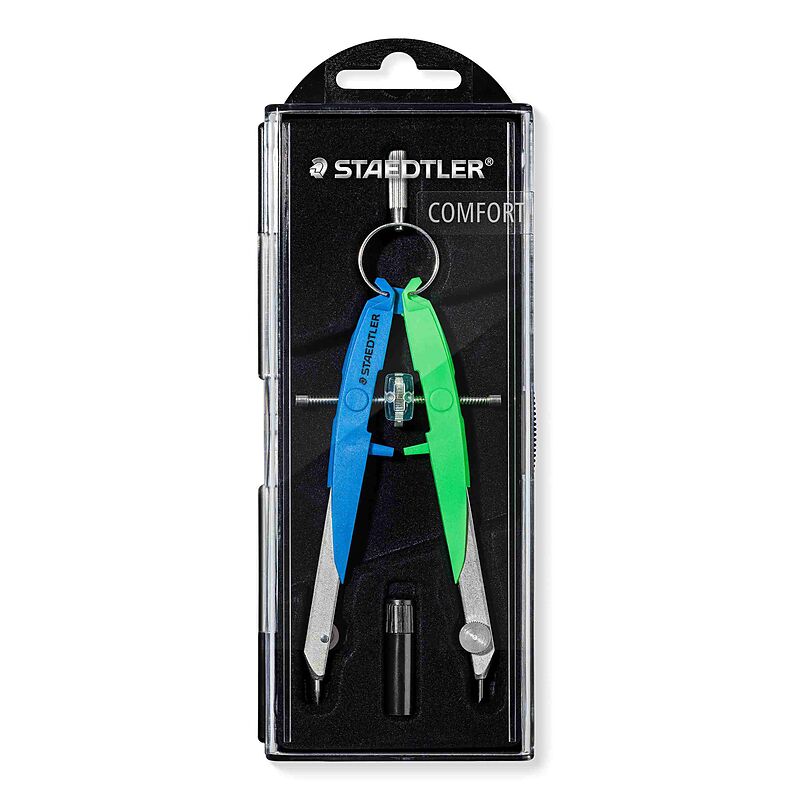 STAEDTLER Mars comfort 556, Präzisions-Geometriezirkel, Zirkel, neon blau/grün 556 00-N1