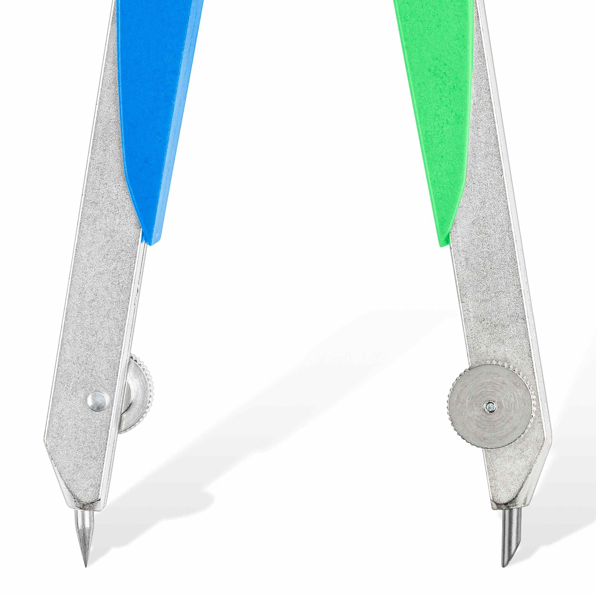 Präzisions-Geometriezirkel mit Spindelführung, Rundfederkopf und MitteltriebsspindelStabile Kunststoff-Metall-AusführungMax. Kreis- ca. 230 mmLänge 154 mm