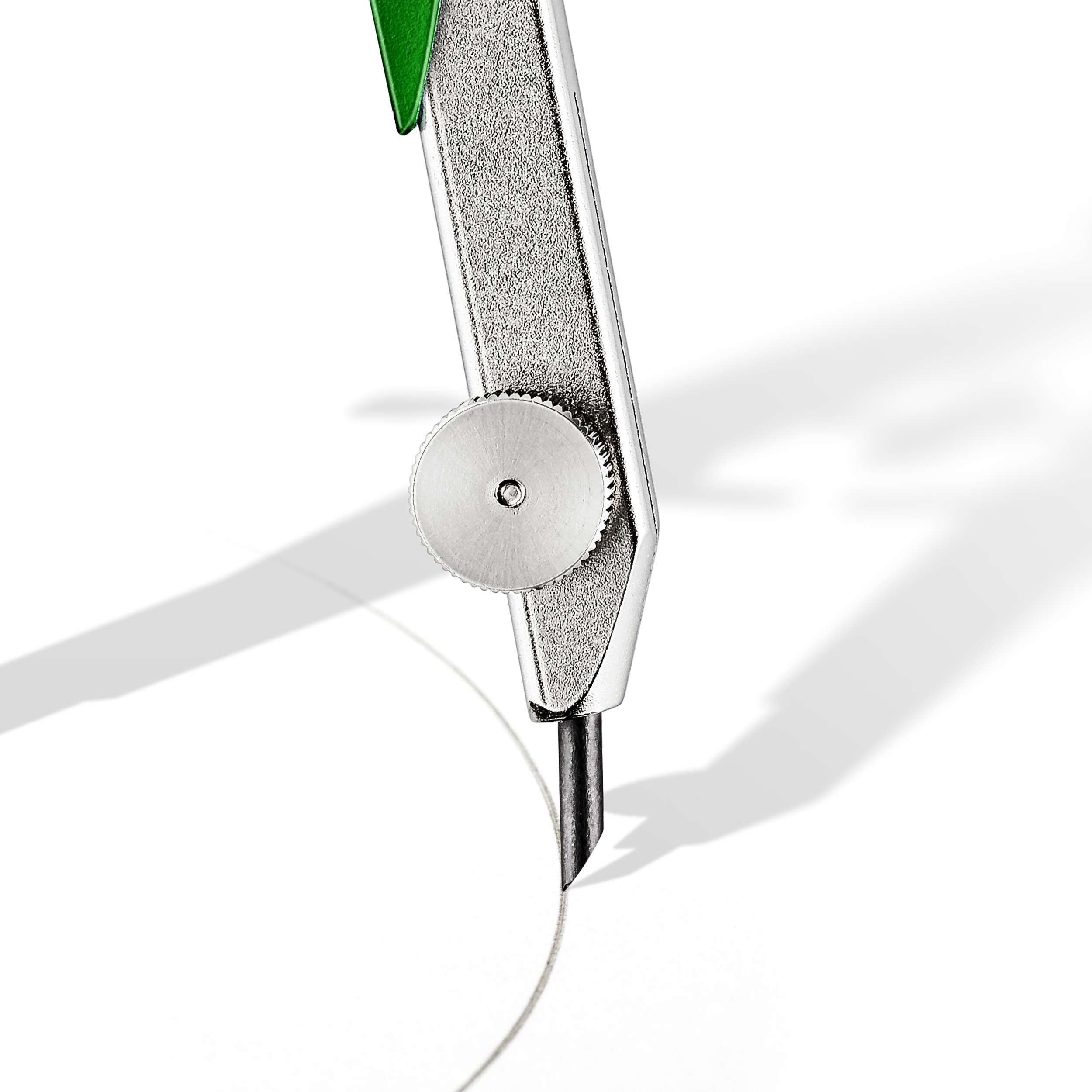 Präzisions-Geometriezirkel mit Spindelführung, Rundfederkopf und MitteltriebsspindelStabile Kunststoff-Metall-AusführungMax. Kreis- ca. 230 mmLänge 154 mm