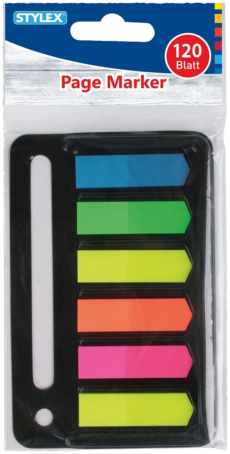Page Marker, 120 Flaggen, Neon Farben, Material: Kunststoff, transluzent und beschriftbar, mit Kunststoffhalter zum Abheften, im Polybeutel