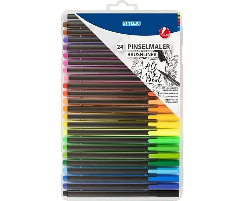 24 Pinselmarker, 24 verschiedene Farben, mit flexibler Pinselspitze, deal für Scrapbooking, Kartengestaltung und Verzieren von Bastelarbeiten, im wiederverschließbarem Etui.