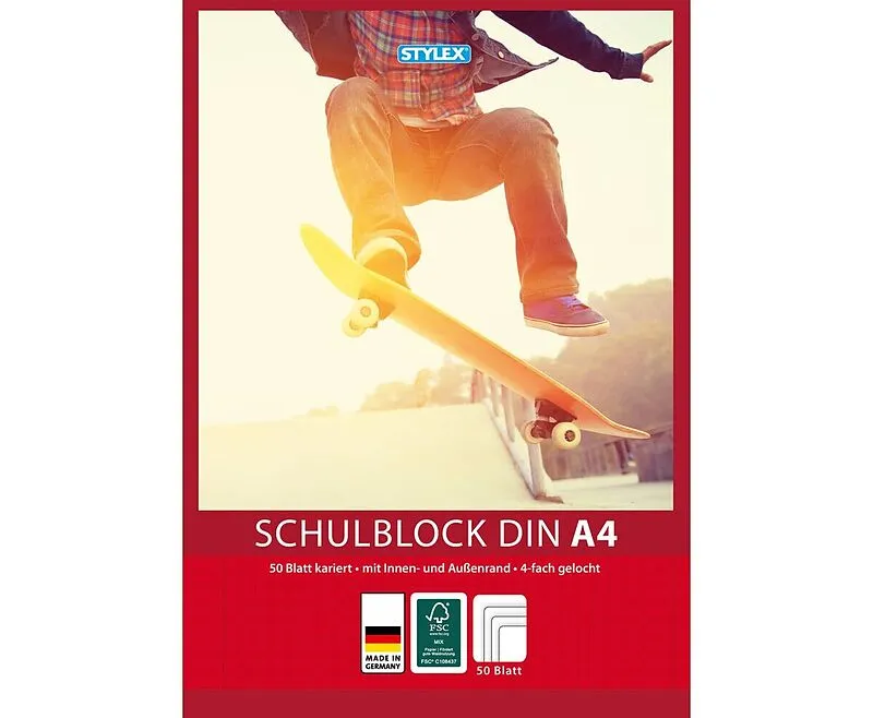 Schulblöcke, DIN A4, 50 Blatt, kariert, 4-fach gelocht, 60 g/m, mit Innen- und Außenrand