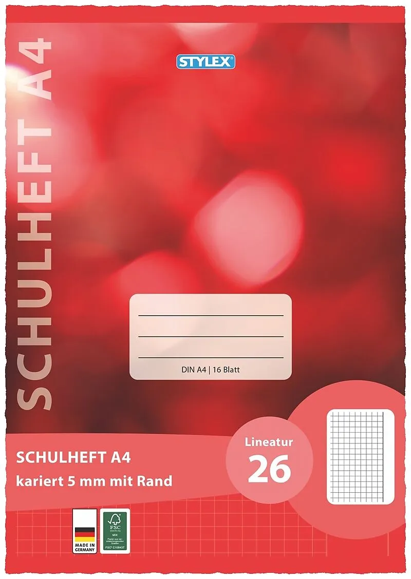 Stylex Schulheft, Lineatur 26, DIN A4, 16 Blatt