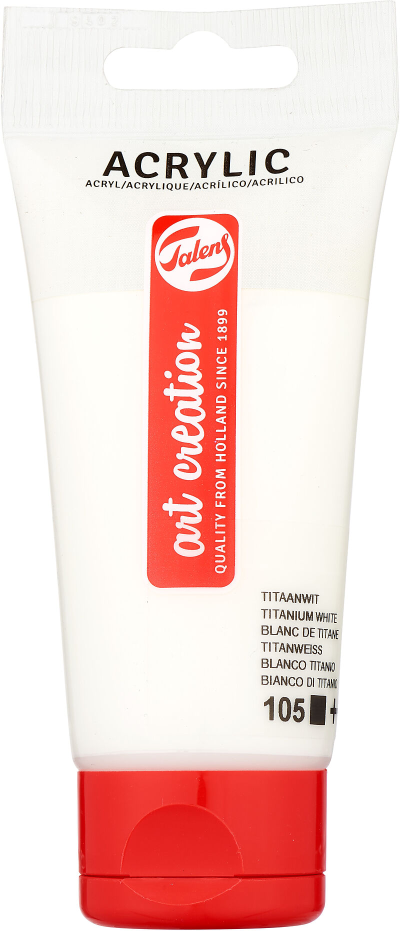 Talens Art Creation Acrylfarbe Tube 75 ml Titanweiß 105 Diese Acrylfarbe in der Farbe Titanweiß (105) ist eine deckende Farbe mit hervorragender Lichtechtheit (+++). Talens Art Creation Acrylfarbe ist eine zuverlässige Qualitäts-Acrylfarbe auf Acrylharzbasis....