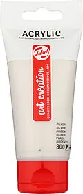 Talens Art Creation Acrylfarbe Tube 75 ml Silber 800 Diese Acrylfarbe in der Farbe Silber (800) ist eine halb deckende Farbe mit hervorragender Lichtechtheit (+++). Talens Art Creation Acrylfarbe ist eine zuverlässige Qualitäts-Acrylfarbe auf Acrylharzbasis. ...