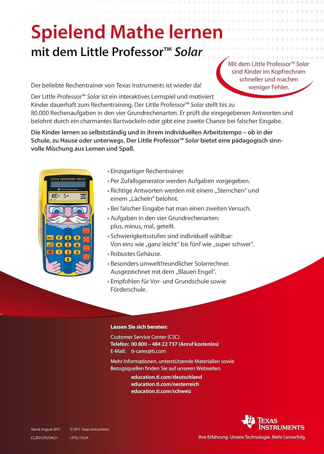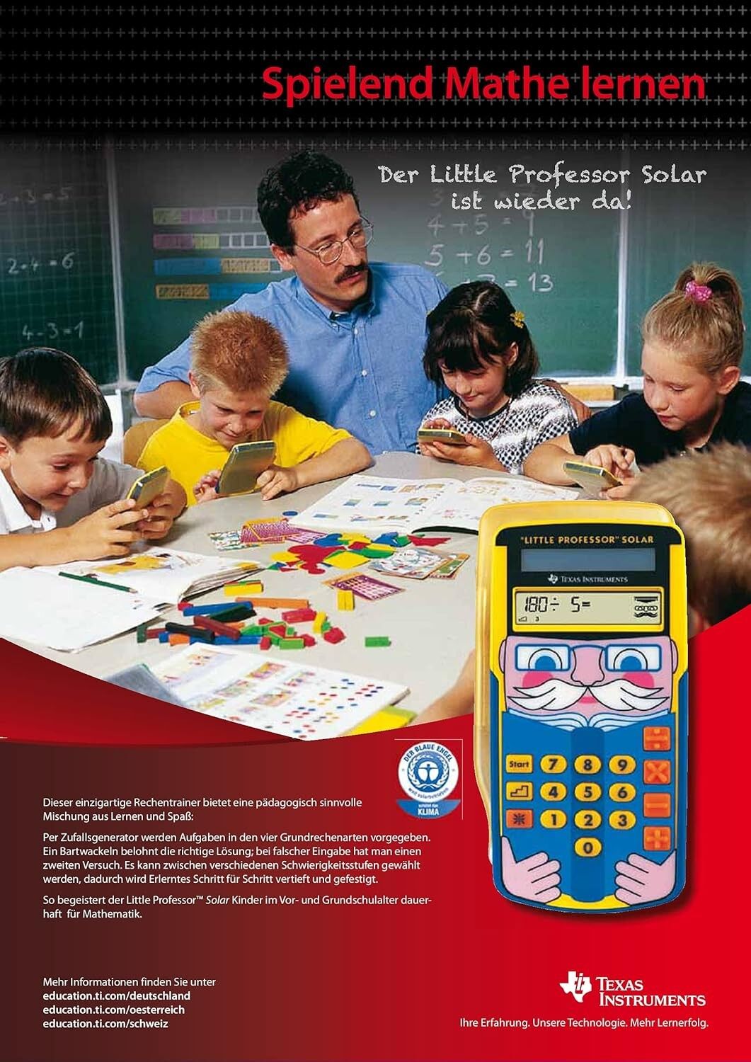 LITTLE PROFESSOR - Schulrechner Primarstufe Spielend Mathe lernen mit dem Little Professor Solar. Die gleichnamige Aufgabensammlung ist die perfekte Ergänzung des Rechentrainers! Einzigartiger Rechentrainer Per Zufallsgenerator werden Aufgaben in den vier Gru...