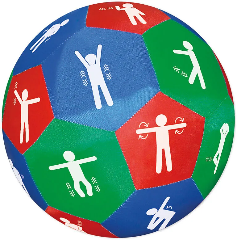 Lehrmaterial Dieser Ball enthält 30 verschiedene Bewegungs-Vorschläge in 3 Farbfeldern. Das rote Feld steht für figürlich dargestellte Bewegungen der Arme, grün für die Beine und blau für den Körper. Damit kommt Bewegung ins Klassenzimmer. Der Ball eignet sic...