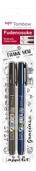 Kalligrafiestifte Fudenosuke, 2 Stück Der Fudenosuke Brush Pen eignet sich mit seiner elastischen Pinselspitze für Kalligraphie, Skizzen, Sketchnotes, Doodling, Hand Lettering u.v.m. Die Linienbreite variiert von sehr fein bis dick durch ausgeübtem Druck auf ...