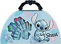 Halbrunder Malkoffer mit Tragegriff, Inhalt: 12 Mini Buntstifte, 6 Fasermaler, 24 Wachsmalkreiden, Radierer, 2 Mini Bleistifte, Spitzer, 4 Poster, 1 Stickerblatt