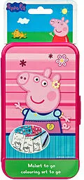 20 Ausmalvorlagen (9,40 x 17,00 cm), 3 Papierstickerbögen (10,20 x 7,60 cm), 4 Mini Buntstifte, in Mitnahmebox
