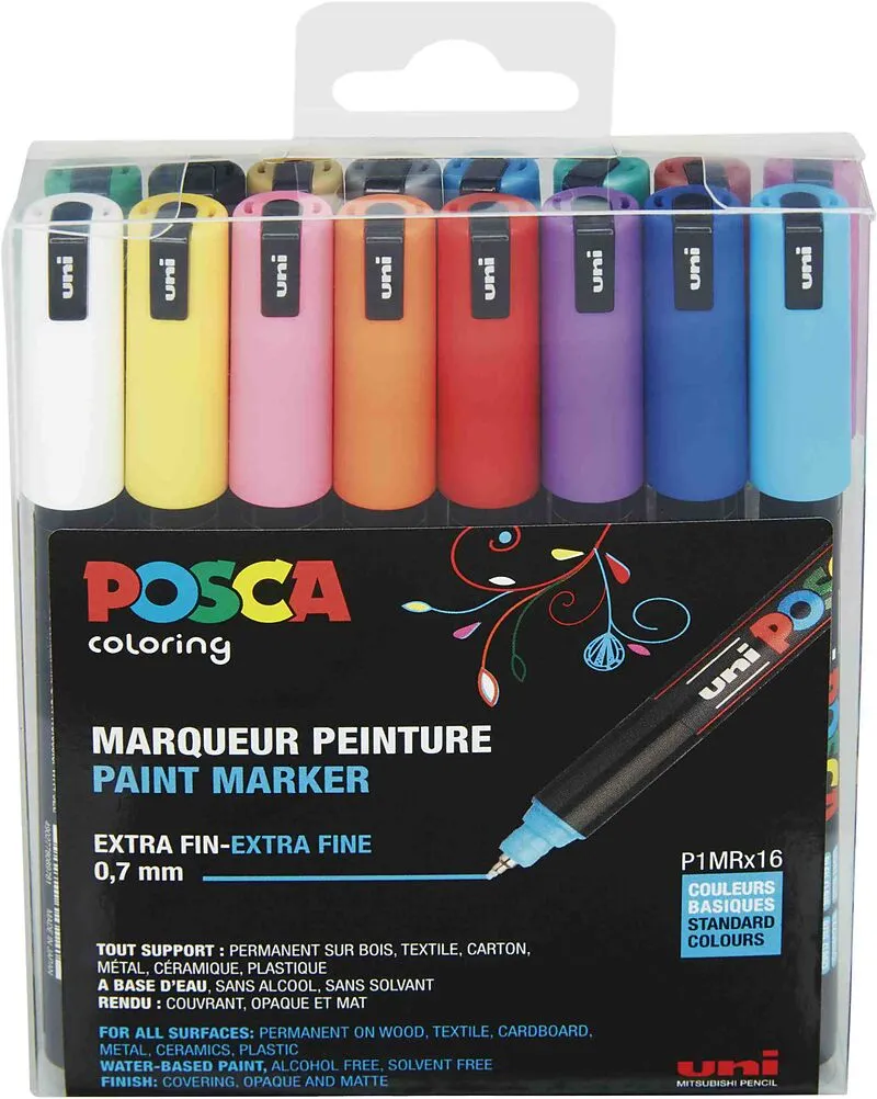 Acryl-Farbmarker für fast alle Oberflächen; Ideal zum Malen, Gestalten, Kolorieren, Zeichnen, Schreiben; deckende, opake, matte Tinte; Permanent auf porösen Oberflächen wie Papier, Pappe, Holz, Ton, Textil; Abwischbar von glatten Oberflächen wie Glas; Linienbr...