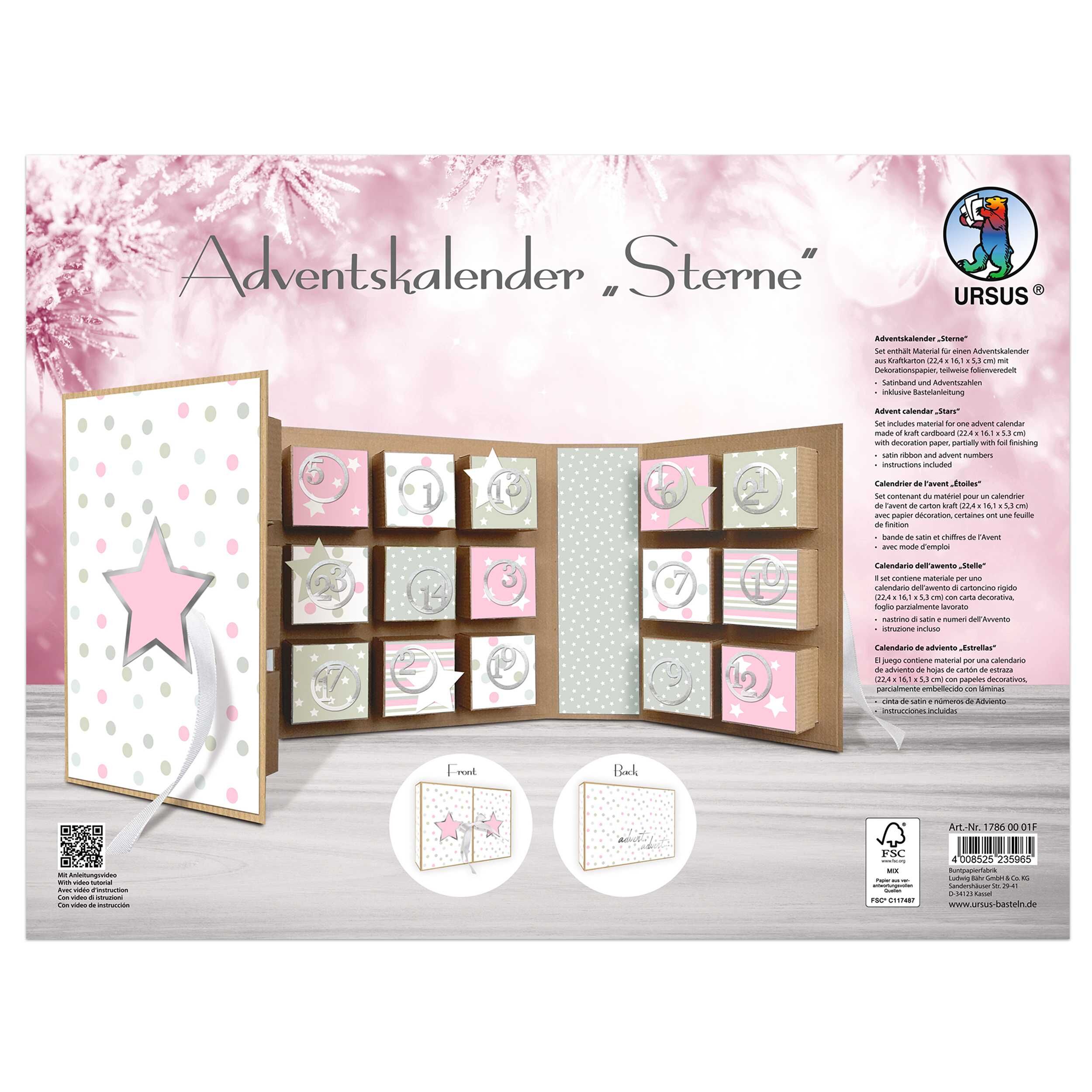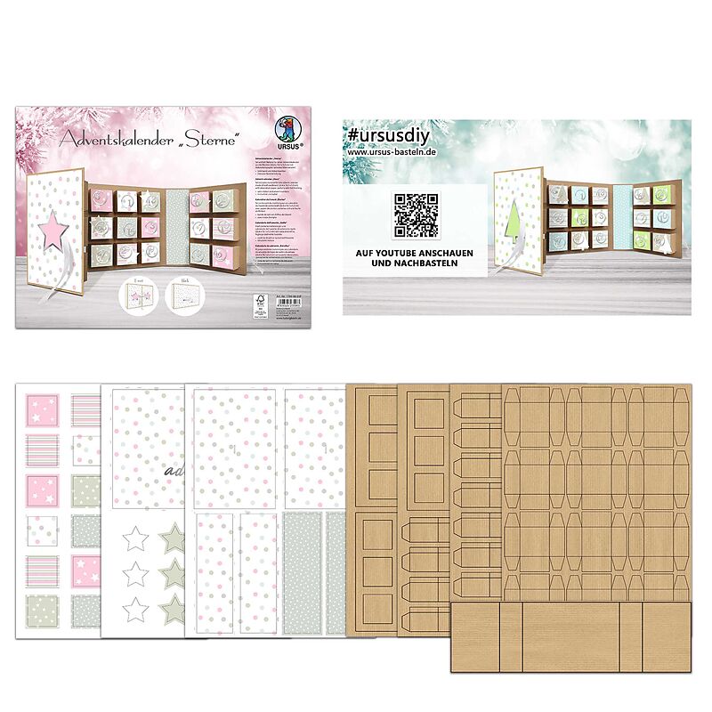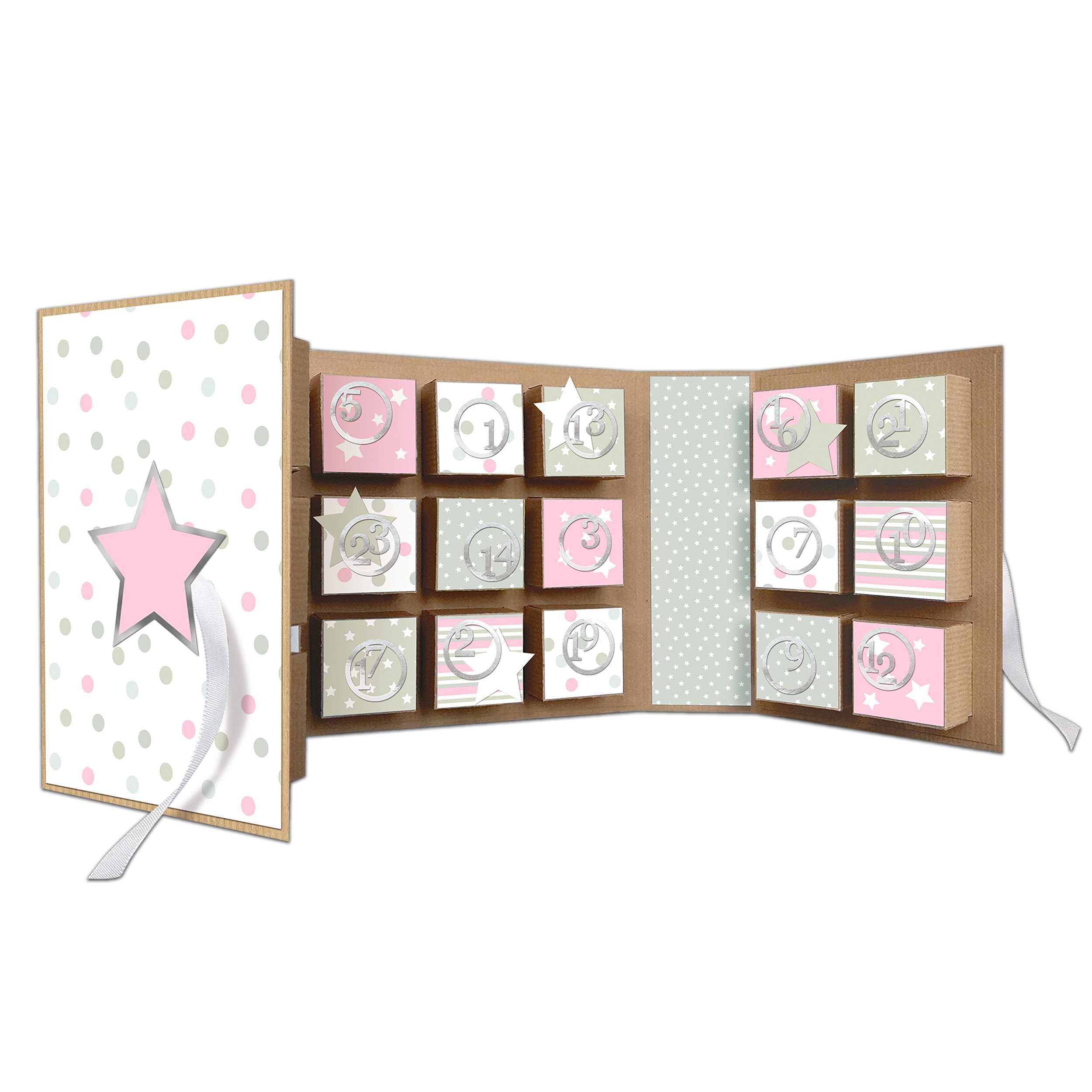 Set enthält Materialien für 1 Adventskalender 22,4 x 16,1 x 5,3 cm, aus Kraftkarton (250 g/m), mit Dekorationspapier, teilweise folienveredelt, Satinband, Adventszahlen, inklusive Bastelanleitung. Dekorationspapier (teilweise folienveredelt), Satinband, Advent...