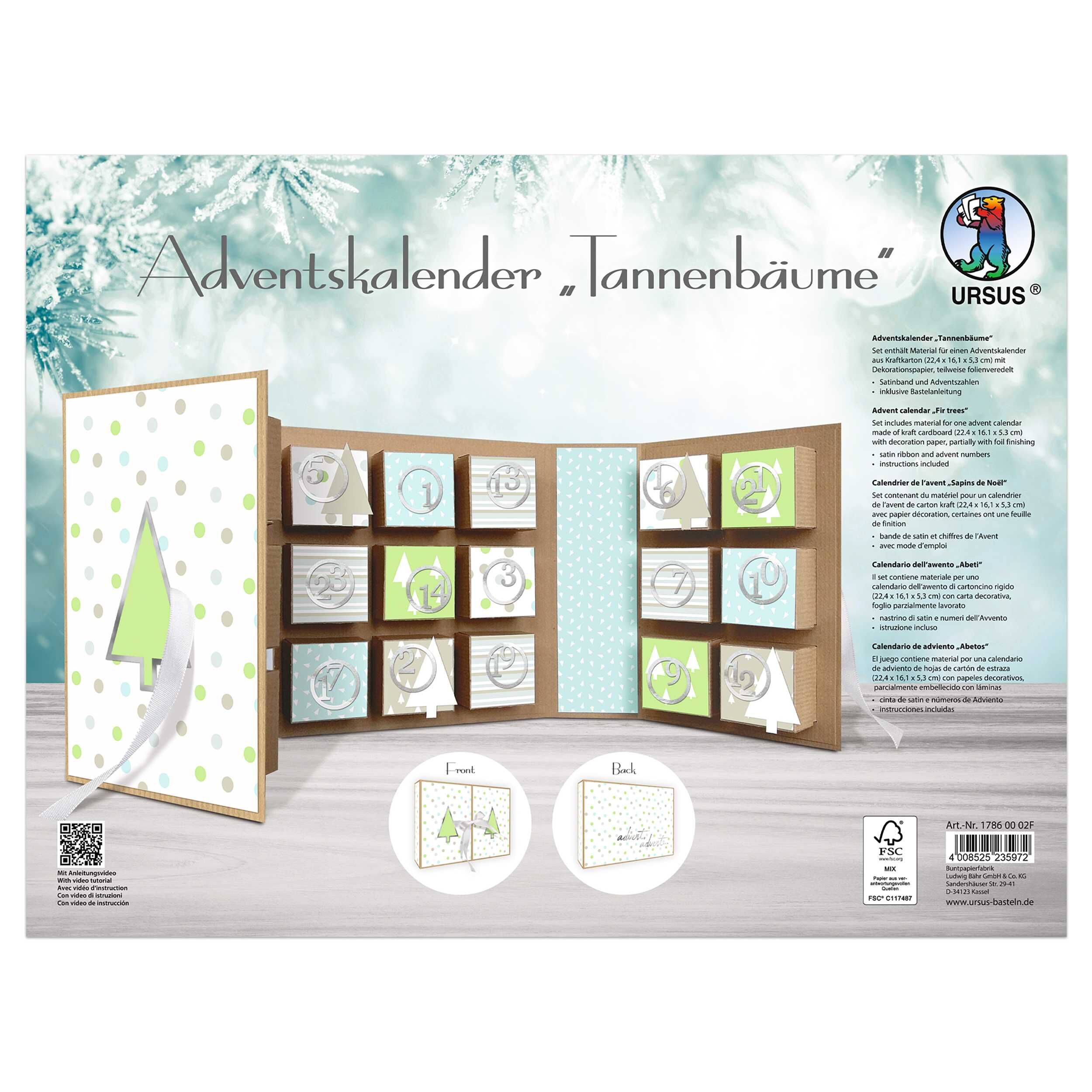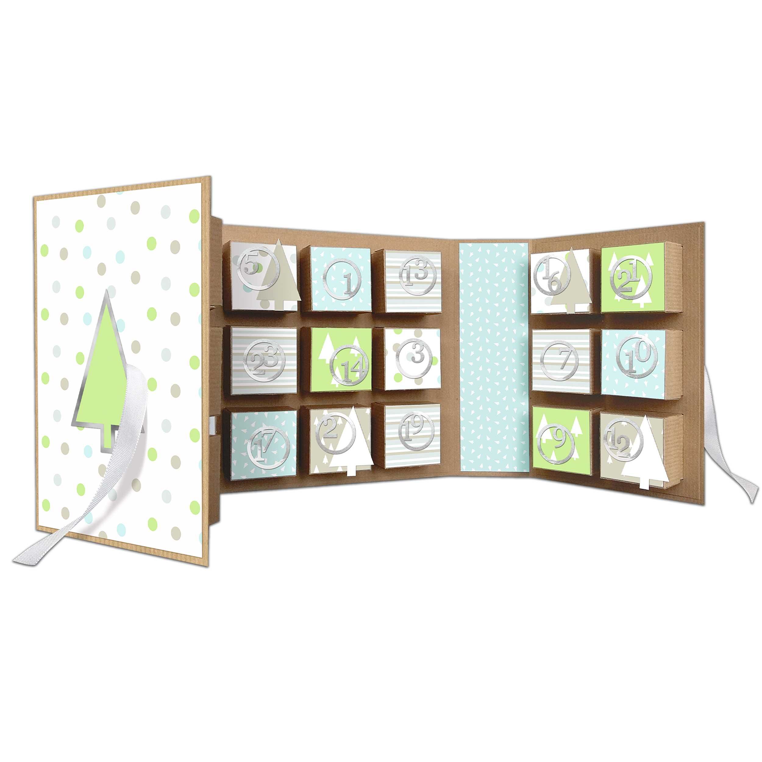 Set enthält Materialien für 1 Adventskalender 22,4 x 16,1 x 5,3 cm, aus Kraftkarton (250 g/m), mit Dekorationspapier, teilweise folienveredelt, Satinband, Adventszahlen, inklusive Bastelanleitung. Dekorationspapier (teilweise folienveredelt), Satinband, Advent...