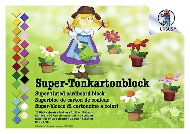 Tonkarton-Block (220 g/m, Format 24 x 34 cm, 50 Blatt sortiert in 25 Farben) Qualität: aus Frischzellulose und durchgefärbt (daher hohe Farbbrillanz und Lichtbeständigkeit) - "Made in Germany" 50 Blatt Tonkarton (220 g/m, 24 x 34 cm) sortiert in 25 Farben...