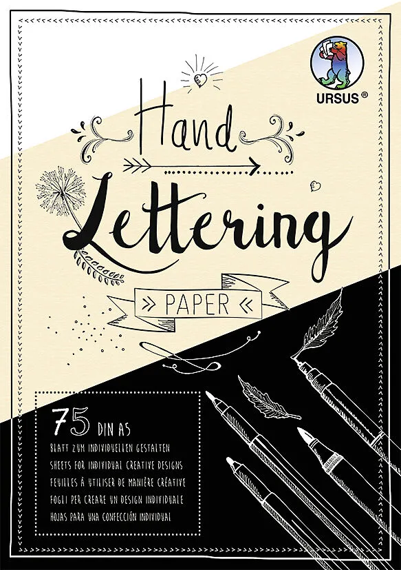Handlettering-Block (Tonkarton, 200 und 210 g/m, Format DIN A5, 75 Blatt) sortiert in 3 Farben (Weiß, Creme und Schwarz) - "Made in Germany" Art work is hard work. Machen Sie es sich einfach und greifen Sie zu hochwertigem Künstlerbedarf von URSUS. 75 Blatt To...