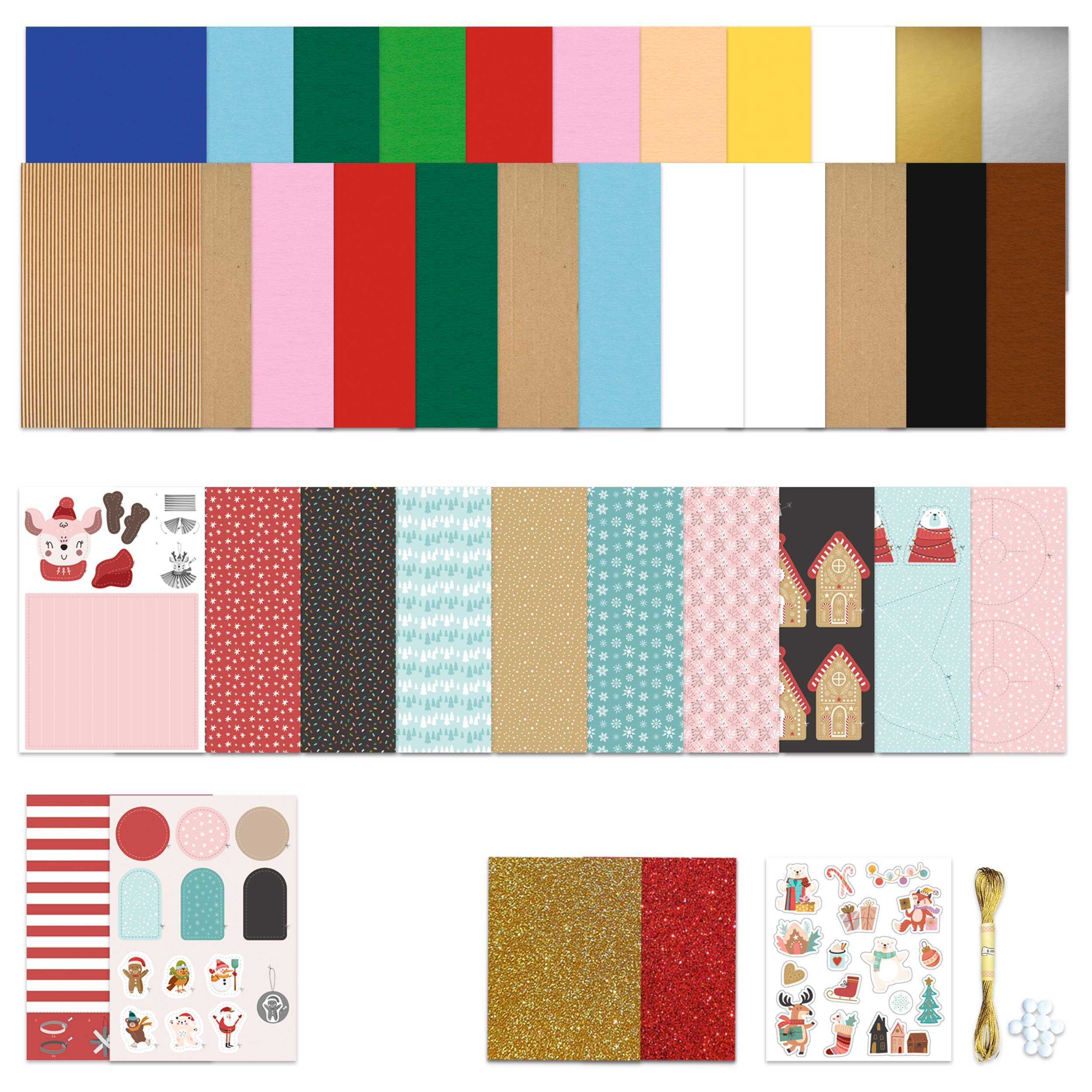 Bastelset Bastelset "Fröhliche Festtage" 23 Bastelpapiere 120 - 350 g/m2, 17,5x25cm, sortiert in verschiedenen Papierqualitäten und Farben 12 Motivbogen 120 g/m2 und 250 g/m2, 17,5x25cm, sortiert in verschiedenen Designs 2 Blatt Glitterkarton 330 g/...