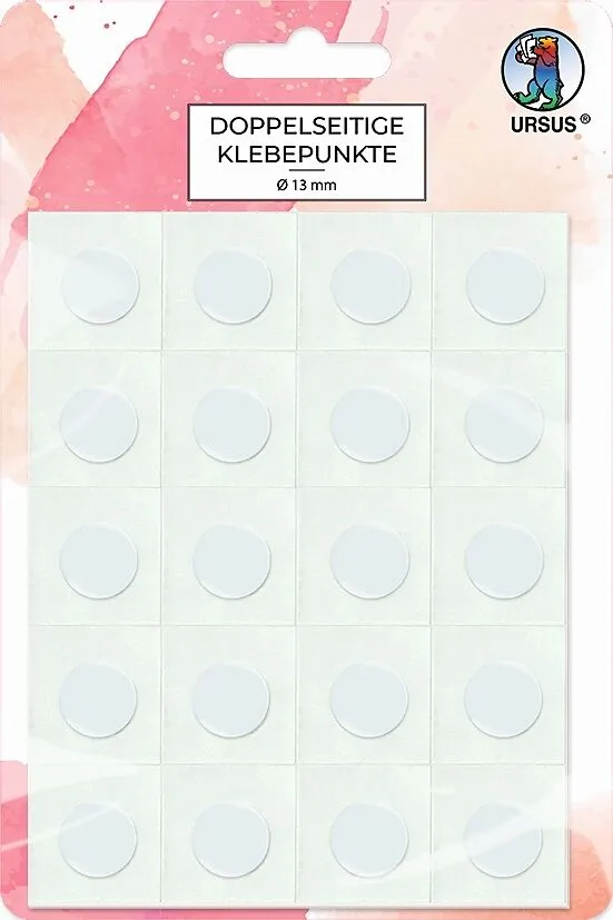 100 doppelseitige Klebepunkte (Durchmesser: 13 mm) - URSUS-Qualität: permanent klebendVerpackung mit Euro-Lochung.100 Klebebunkte ( 13 mm)