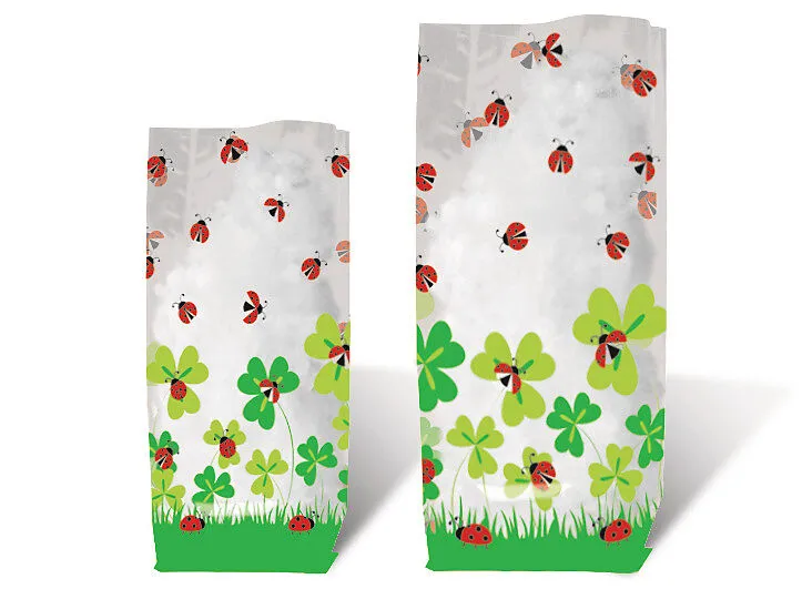 aus lebensmittelechter Folie, transparent, bedruckt mit Marienkäfermotive