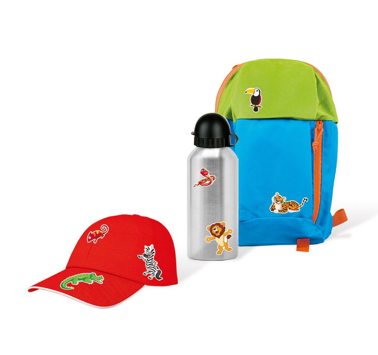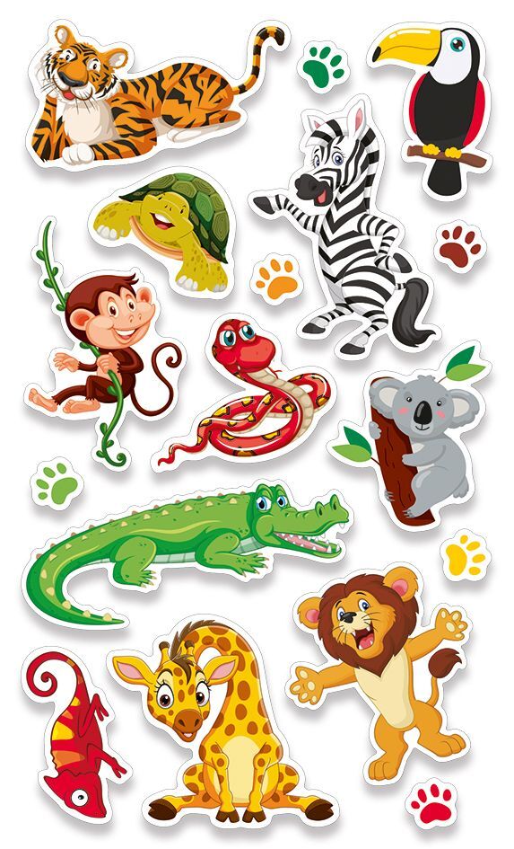 20 Sticker in verschiedenen Motiven (Größe: ca. 10 - 61 mm) Verpackuung mit Euro-Lochung. 1 selbstklebender Stickerbogen (10 x 16,5 cm) in verschiedenen Motiven und Größen