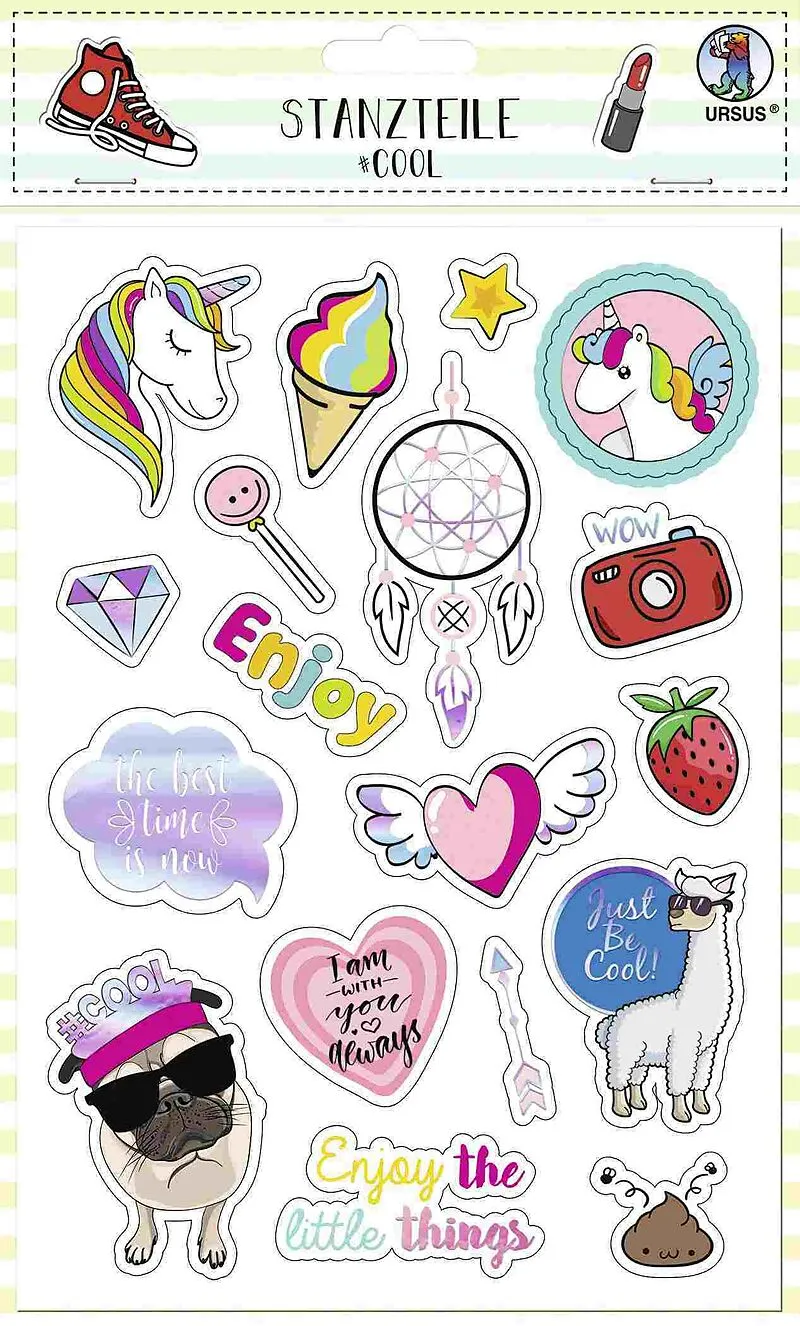 113 coole Stanzteile zum - Dank im Lieferumfang enthaltener Klebepads - überall hinkleben. 113 coole Stanzteile und Klebepads Verpackuung mit Euro-Lochung. 5 Stickerbögen mit 113 Stanzteilen (einseitig bedruckt, teilweise folienveredelt) und 150 Klebepads...