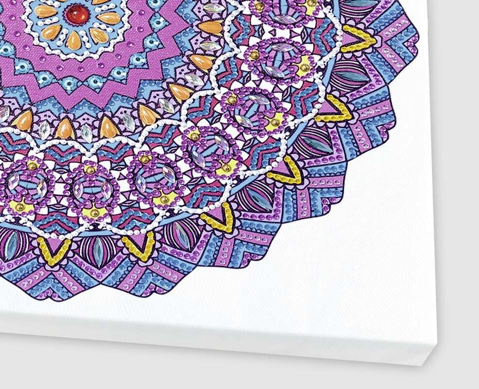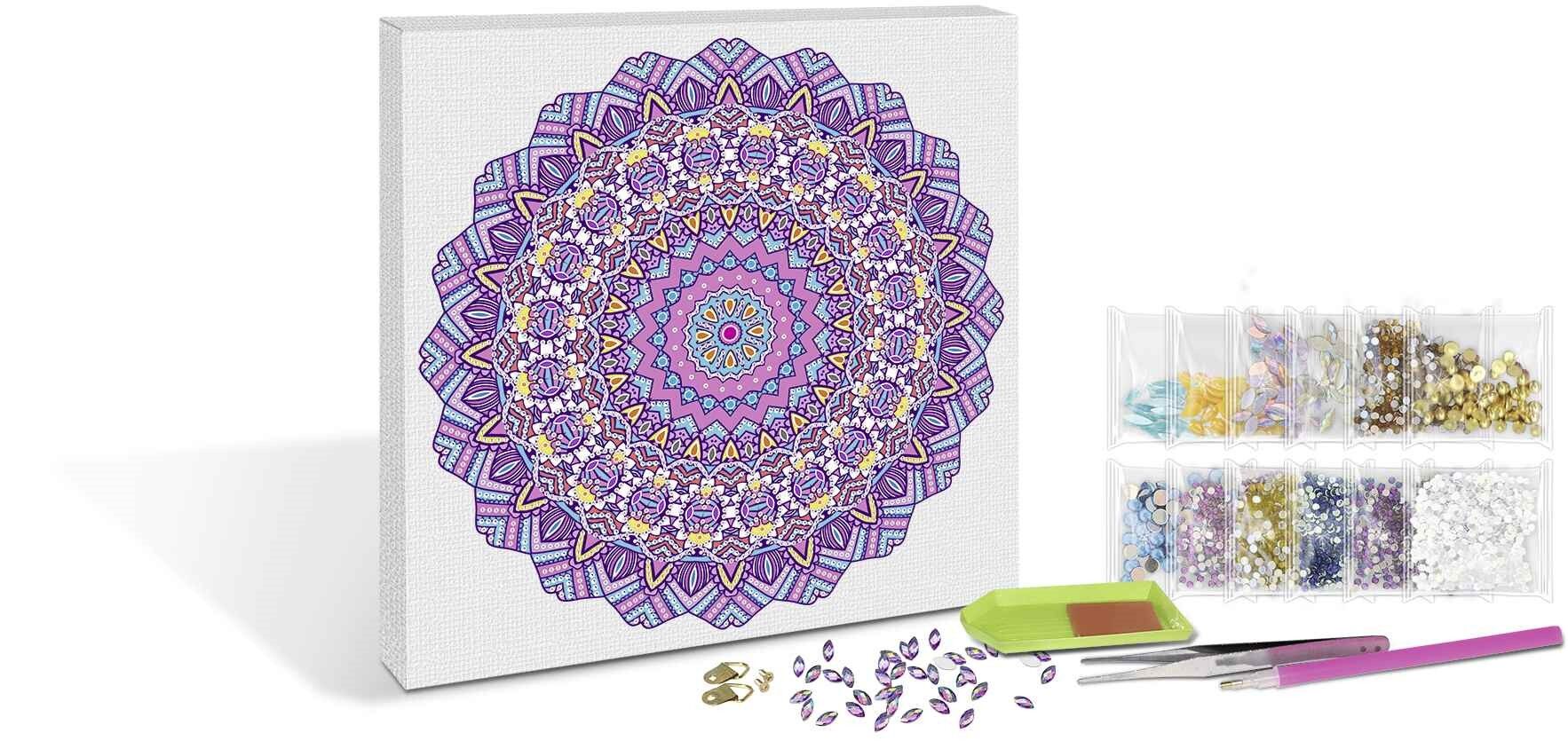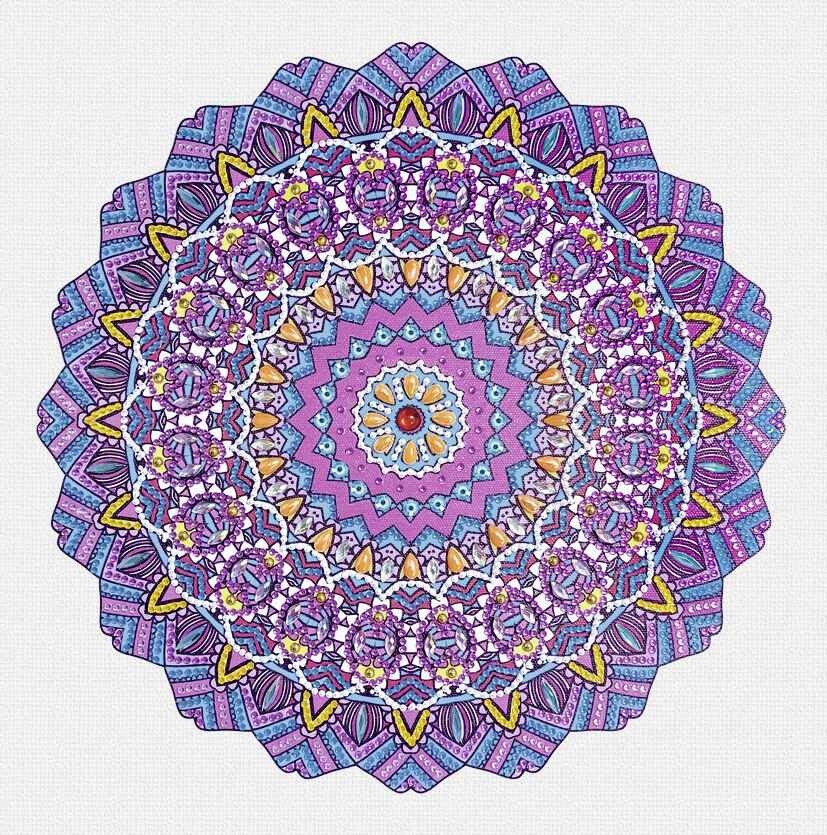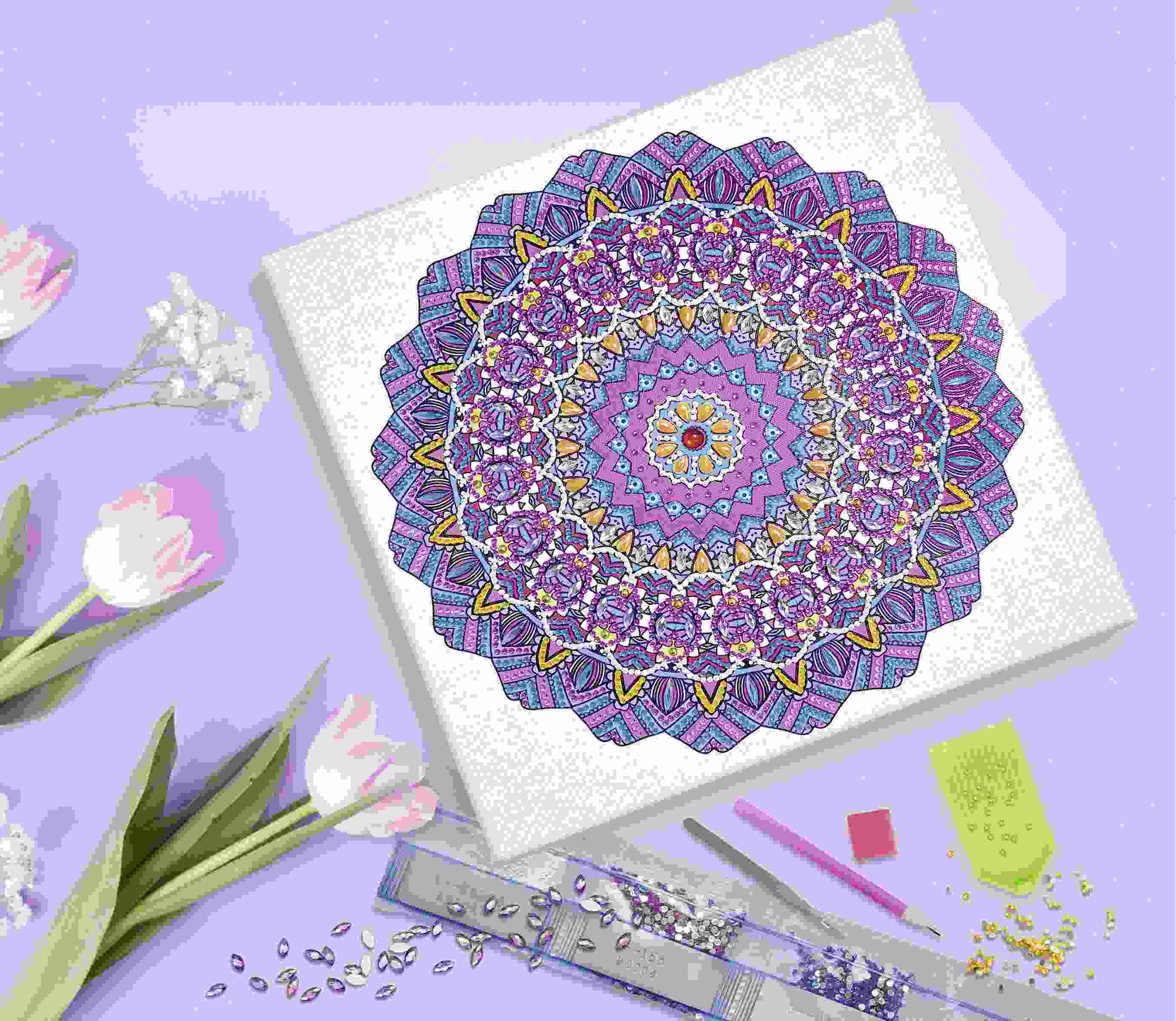 Diamanten Mandala zum Selbstgestalten in den Farben Lila, Pink und Blau